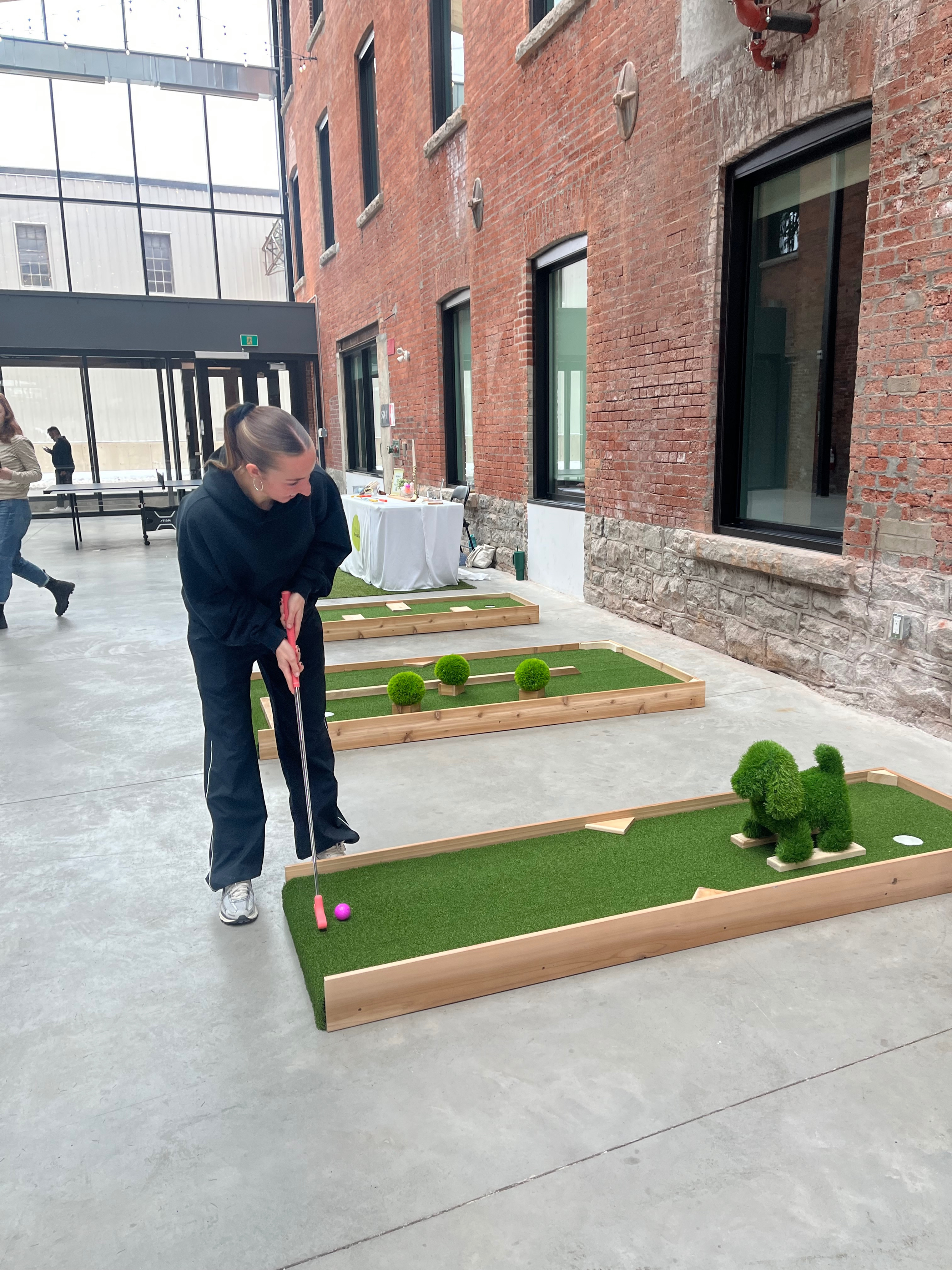 Our mini putt setups are interactive, approachable, and fun for all ages. Whether it’s a friendly competition during cocktail hour or a casual activity that brings people together, we create moments that feel effortless and engaging. With flexible layouts to fit your space, Ottawa Putt & Play is a unique way to elevate your event and leave a lasting impression.